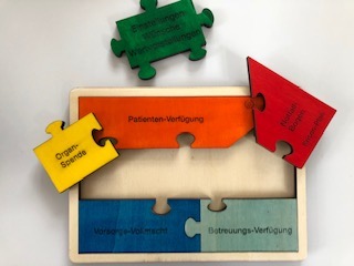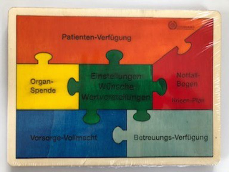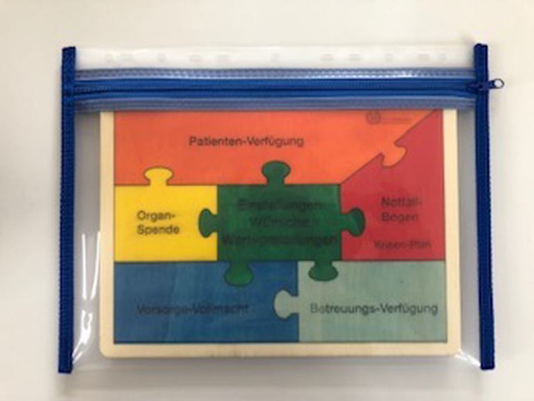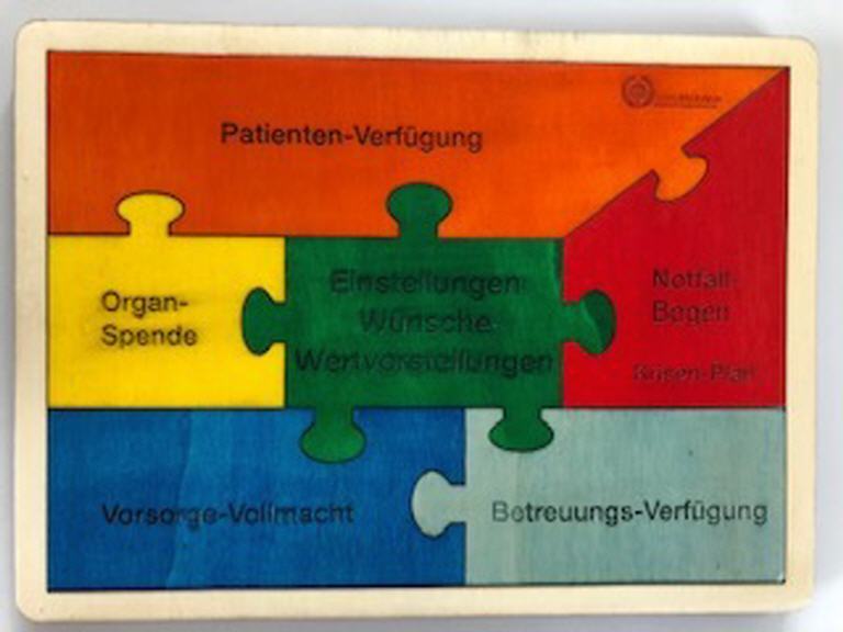 Das Vorsorge-Puzzle ist ein Kommunikationsmittel und Strukturierungshilfe für Gespräche zu Vorsorgedokumente.